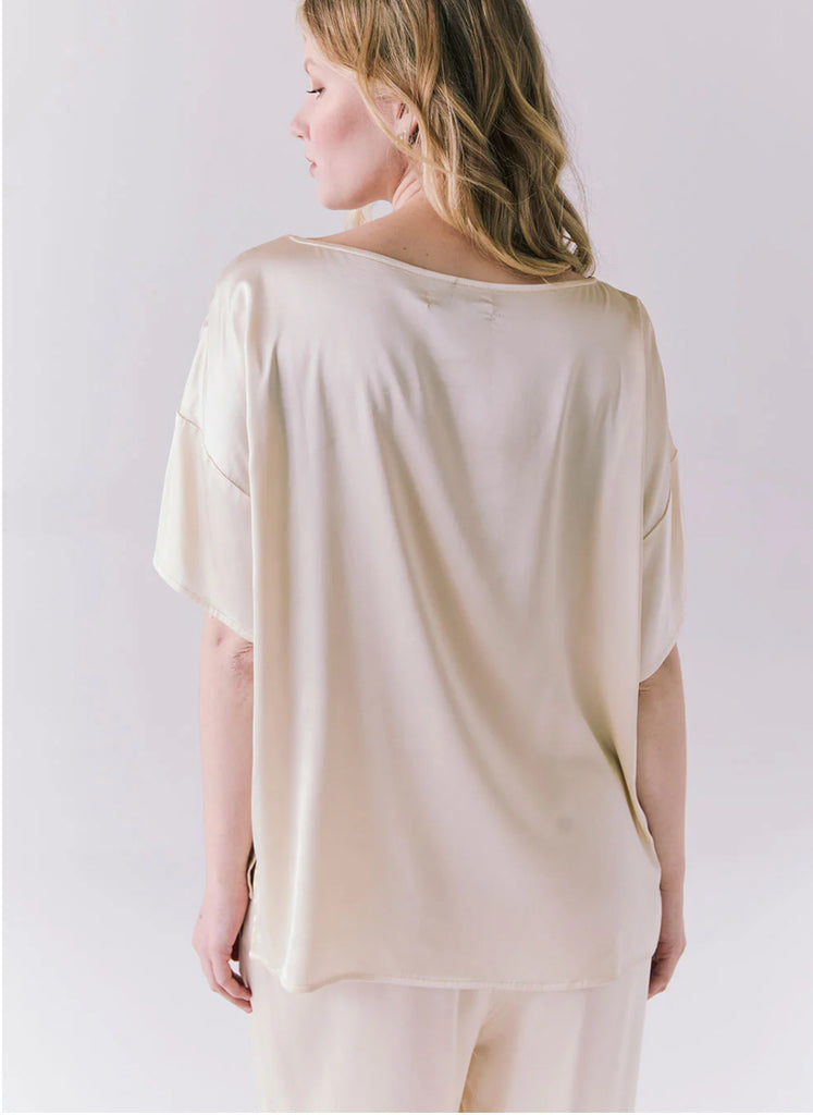 The Whitecap Gray Breezy Tee offers an effortlessly elegant update on a classic white tee. Featuring a high boat neck, a roomy silhouette, and floaty 3/4 length sleeves, this piece combines comfort with refined style for a sophisticated, elevated look.