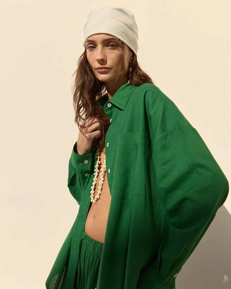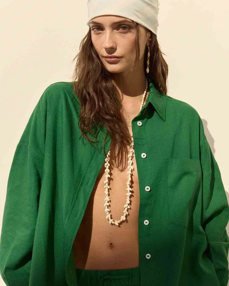 The Antibes Shirt brings a fresh pop of colour to a timeless button up silhouette. Crisp yet effortless, it's perfect for elevating everyday looks. Wear it tucked, layered or slightly undone for an easy statement moment.