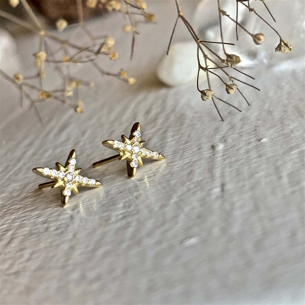 Dress them up or wear them every day to add some sparkle to your life! In gold vermeil, the pavé starburst design stud earrings are more than happy to take the journey with you.
