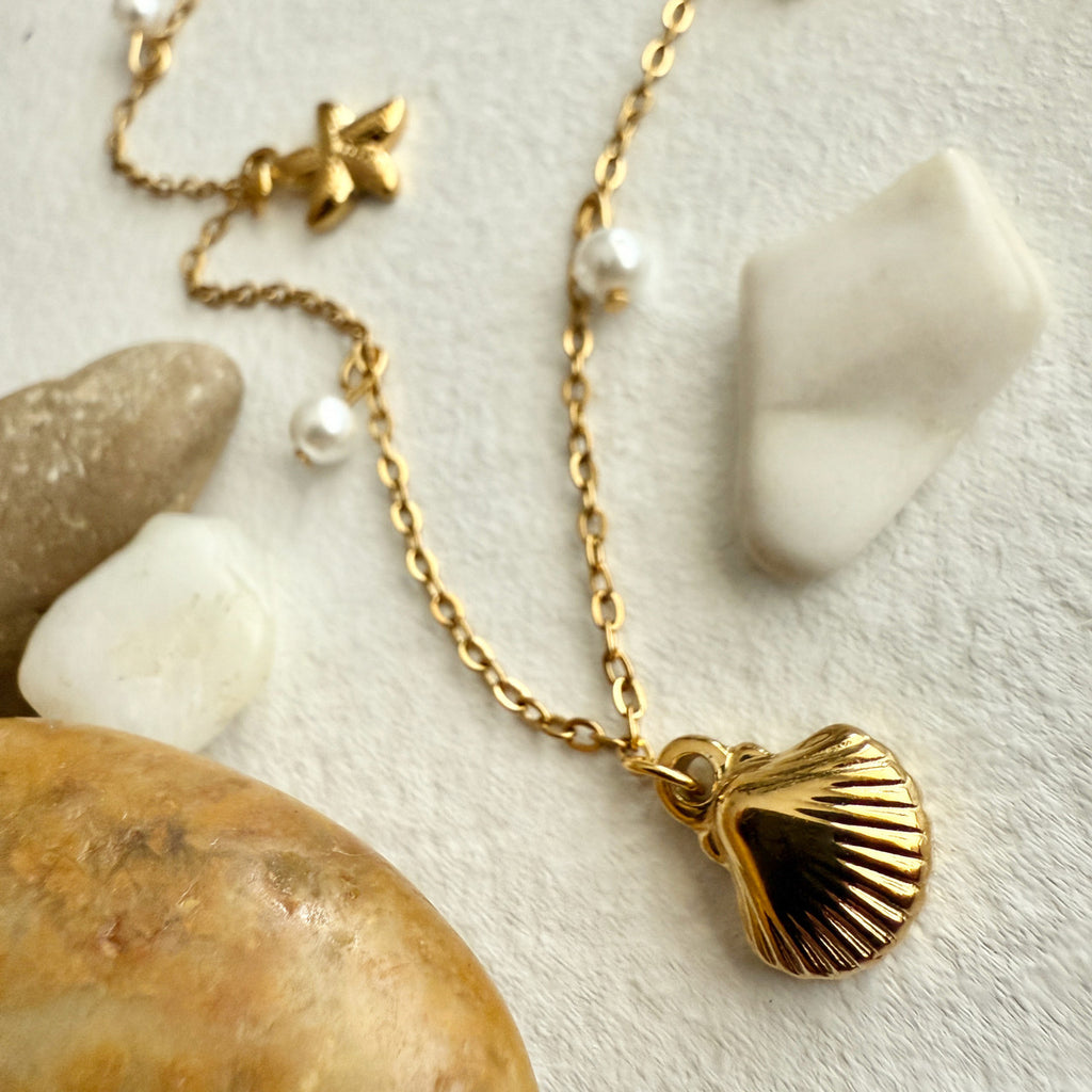 This beautiful charm necklace is a softer, sweeter piece to layer with other faves or just keep it simple for your summertime or vacation look! Coastal beauties keep your look fresh with these dainty pearls and sea stars.