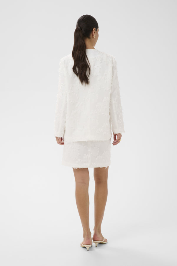 The Kaffe Lena Blazer is a modern take on a classic piece, crafted in a crisp white textured fabric for subtle dimension. Designed with a relaxed, slightly boxy fit, it drapes effortlessly while adding structure to your look.