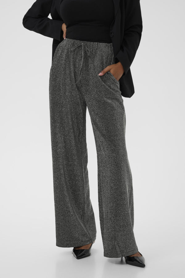 These wide-leg pants are made for nights that call for a little extra sparkle. Featuring a shimmering textured finish, relaxed silhouette, and comfy elastic waistband with an adjustable drawstring, they’re perfect for holiday parties or a chic night out.