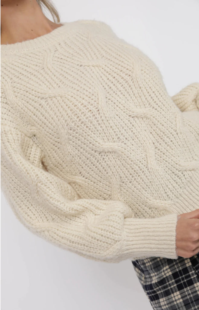 Embrace warmth and comfort in the Go Forth Cable Knit Sweater. Crafted with a cozy, soft texture in a versatile cream shade, this sweater offers gentle warmth for your cooler days. Its modern take on the classic cable knit design combines style with snug softness, making it an ideal companion for relaxed, comfortable moments.