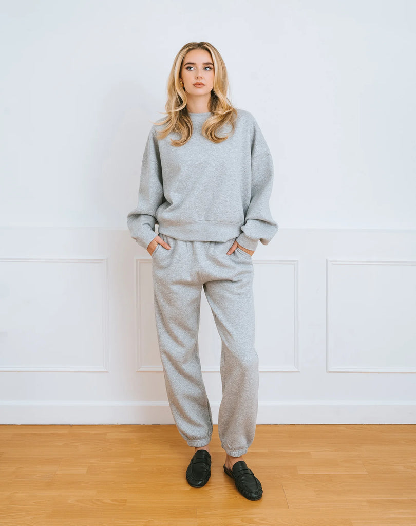 Your new favorite crew, where subtle Swarovski-inspired rhinestones are scattered across the cotton poly fleece, catching the light beautifully without ever feeling over the top.
